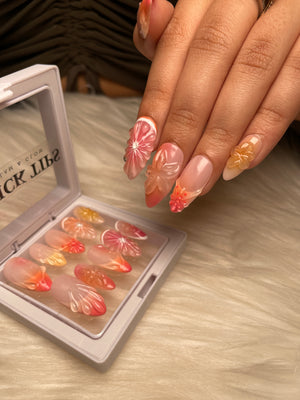 Unleash a warm, radiant glow with our Orange Ombre nails, beautifully transitioning from soft to bold shades of orange. This stunning design is enhanced with a gel 3D effect, adding depth and texture to your nails for a unique, eye-catching look.